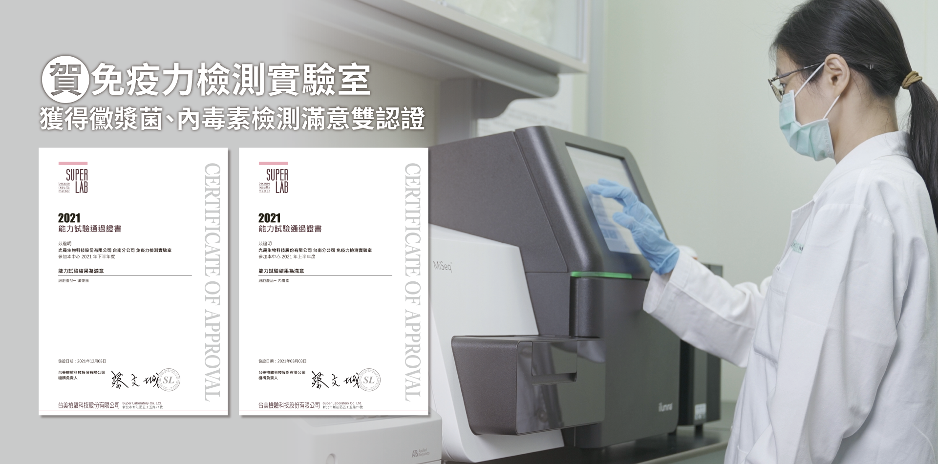 狂賀!光晟生技-免疫力檢測實驗室再度獲得黴漿菌檢測滿意認證